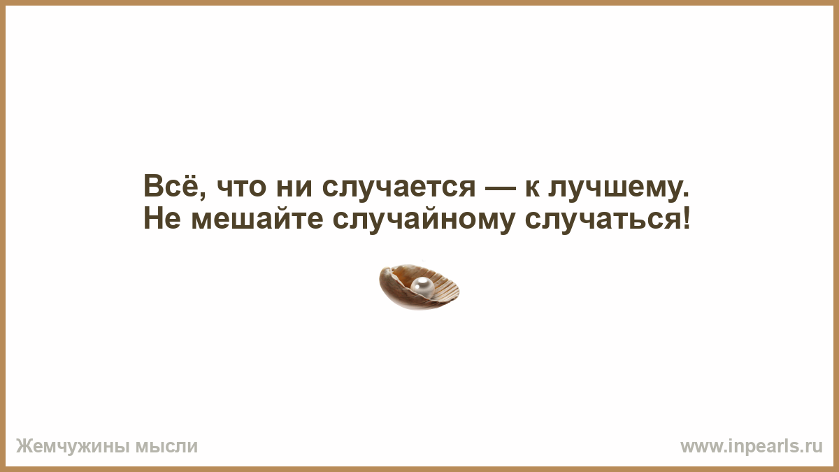 Всё, что ни случается — к лучшему. Не мешайте случайному случаться!