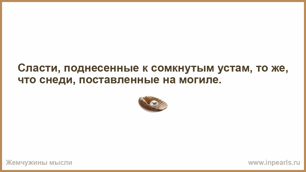 Сласти, поднесенные к сомкнутым устам, то же, что снеди, поставленные на могиле.