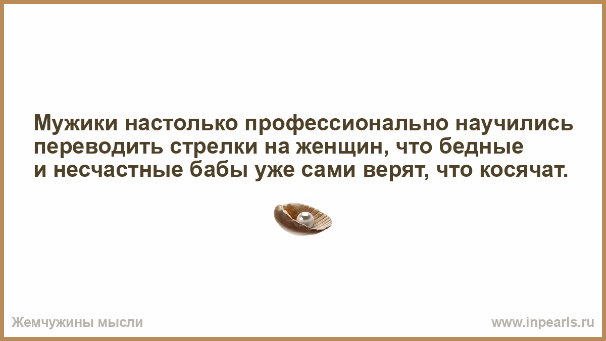 Мужики настолько профессионально научились переводить стрелки на женщин, что бедные и несчастные бабы уже сами верят, что косячат.