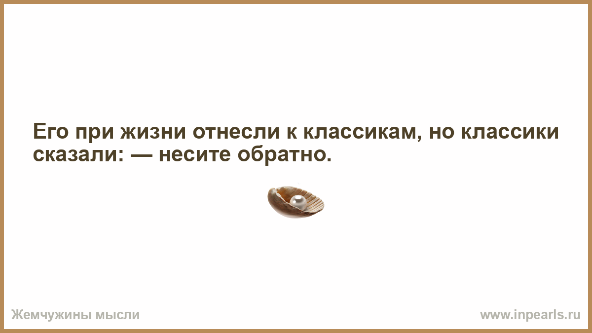 Его при жизни отнесли к классикам, но классики сказали: — несите обратно.