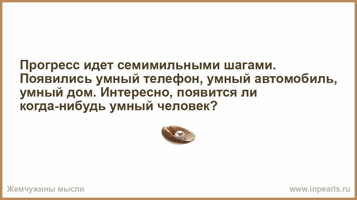 Прогресс идет семимильными шагами. Появились умный телефон, умный автомобиль, умный дом. Интересно, появится ли когда-нибудь умный человек?