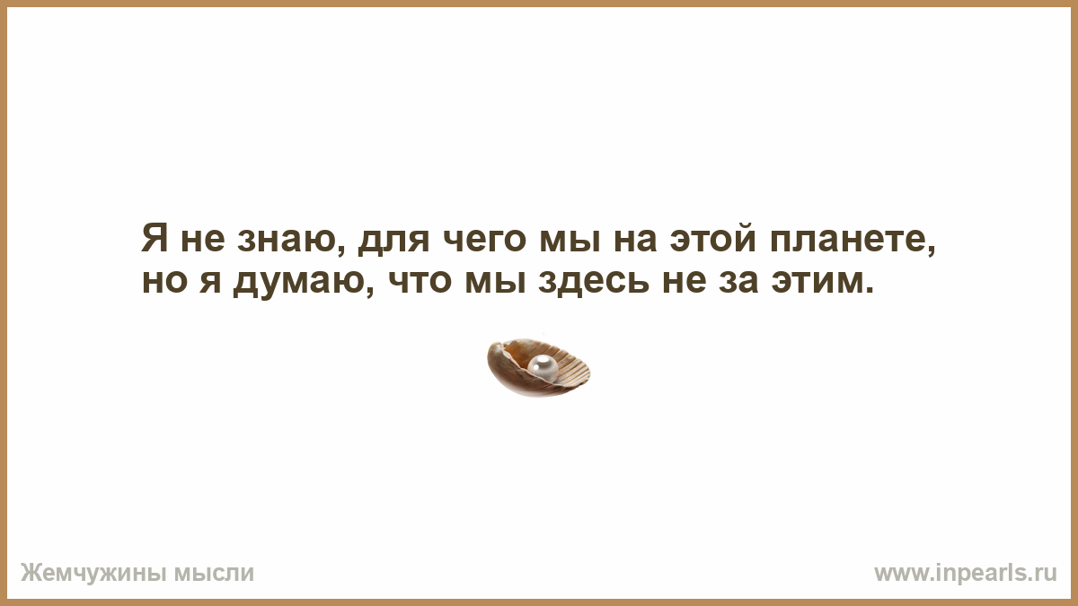 Я не знаю, для чего мы на этой планете, но я думаю, что мы здесь не за этим.
