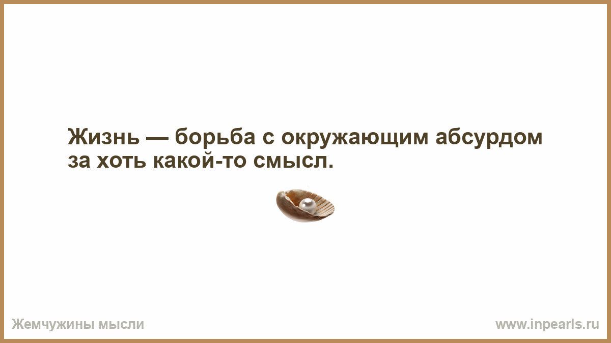 Жизнь — борьба с окружающим абсурдом за хоть какой-то смысл.