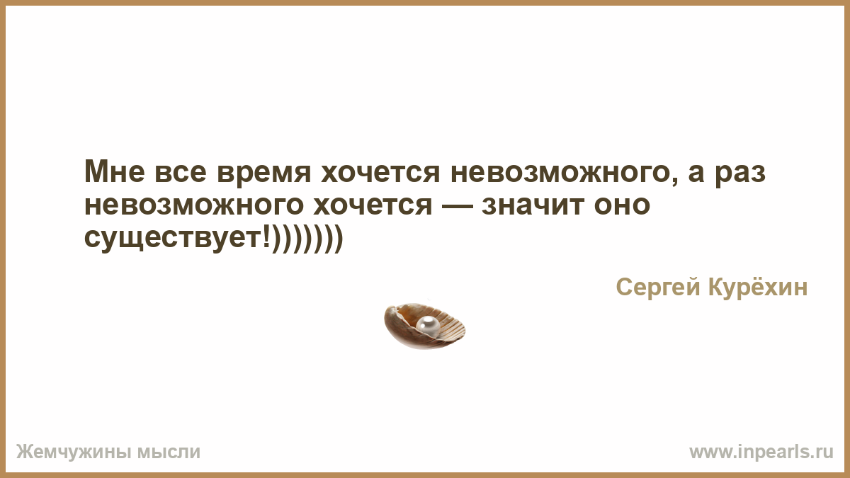 Мне все время хочется невозможного, а раз невозможного хочется — значит оно существует!)))))))