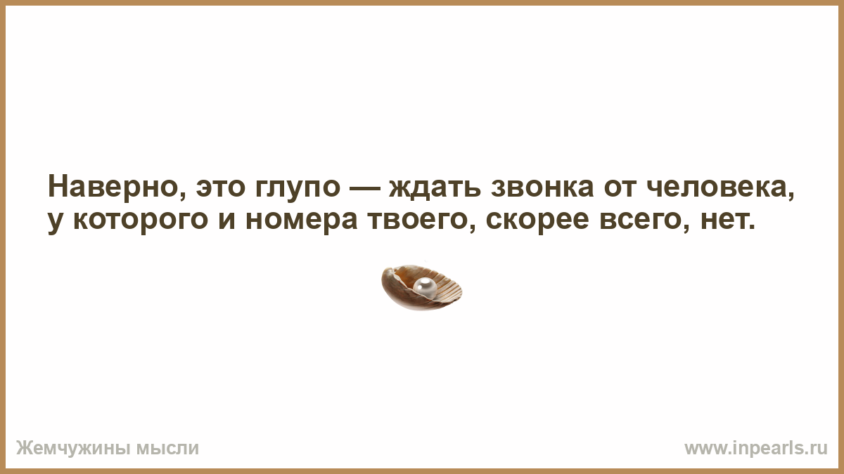 Наверно, это глупо — ждать звонка от человека, у которого и номера твоего, скорее всего, нет.