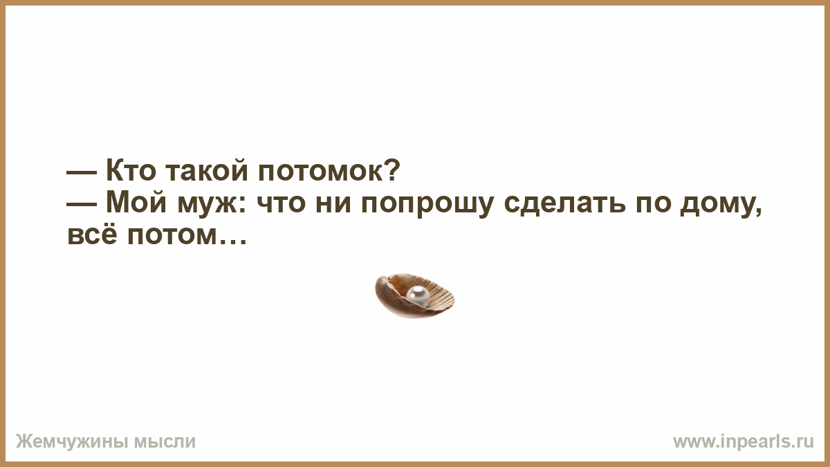— Кто такой потомок? — Мой муж: что ни попрошу сделать по дому, всё потом…