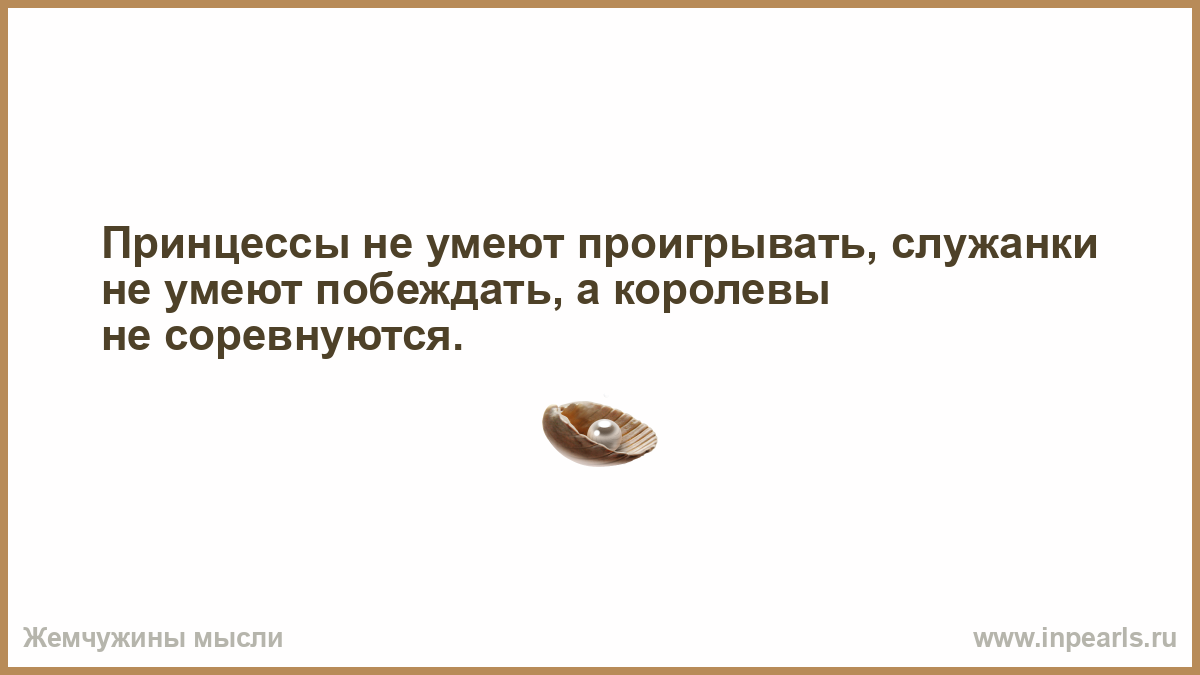 Принцессы не умеют проигрывать, служанки не умеют побеждать, а королевы не соревнуются.