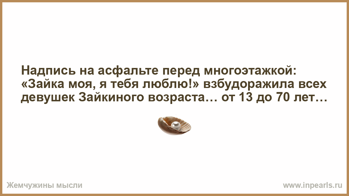 На берегу реки сидят рыбаки — от юноши до старика. На другом берегу — пляж, на котором пара девушек раздевается позагорать. Самый молодой рыбак, откладывая удочки и залезая в воду: — Я, пожалуй, сплаваю познакомиться. Второй, постарше: — Я, пожалуй, пойду лодку поищу. Третий, ещё постарше, меняя наживку: — А мне и отсюда все видать! Четвертый: — Надо будет — сами приплывут! Тут вступает самый старый рыбак, семидесятилетний дедушка: — Тьфу, ты, черт, накаркал, уже плывут! Всю рыбу нам распугают!