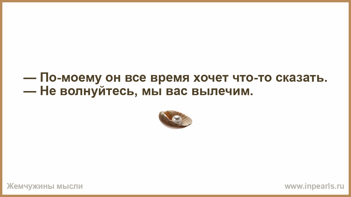 — По-моему он все время хочет что-то сказать. — Не волнуйтесь, мы вас вылечим.