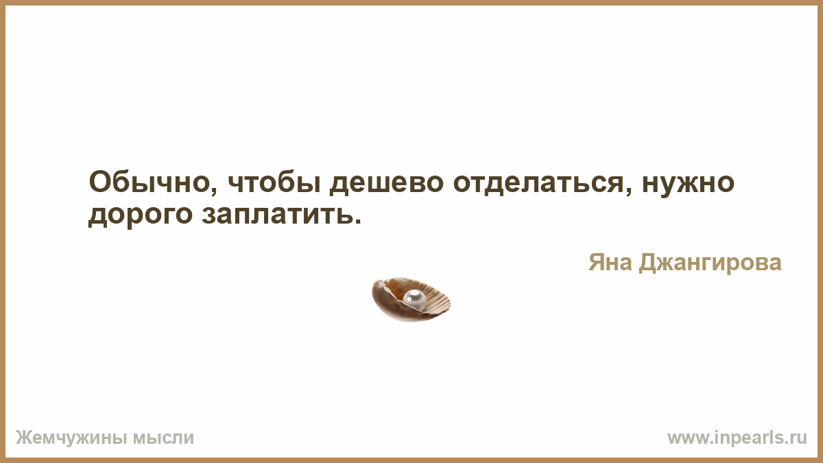 Обычно, чтобы дешево отделаться, нужно дорого заплатить.