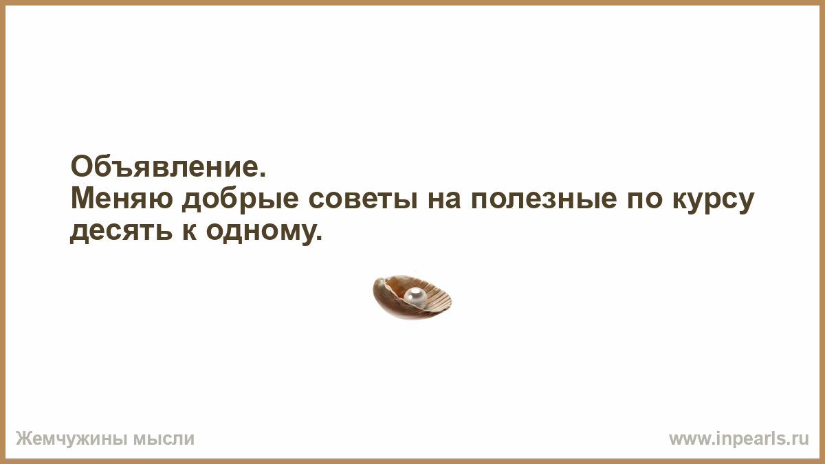 Объявление. Меняю добрые советы на полезные по курсу десять к одному.