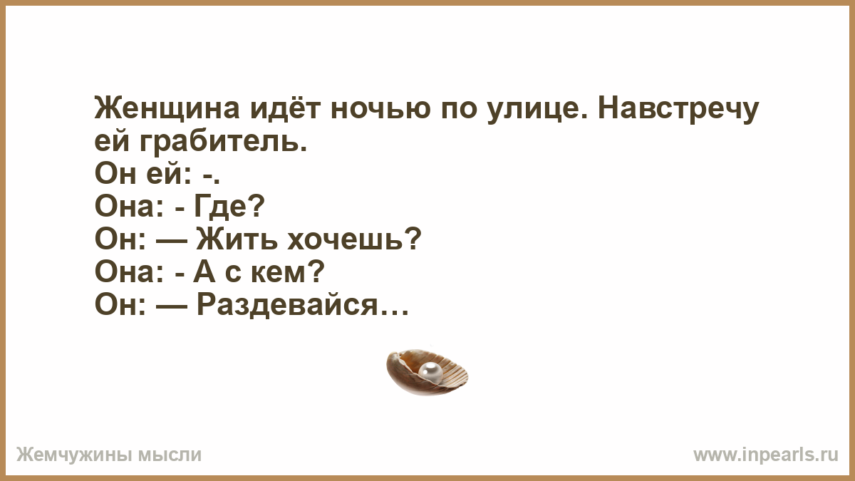 Он: - Ещё раз пикнешь, я тебя изнасилую.