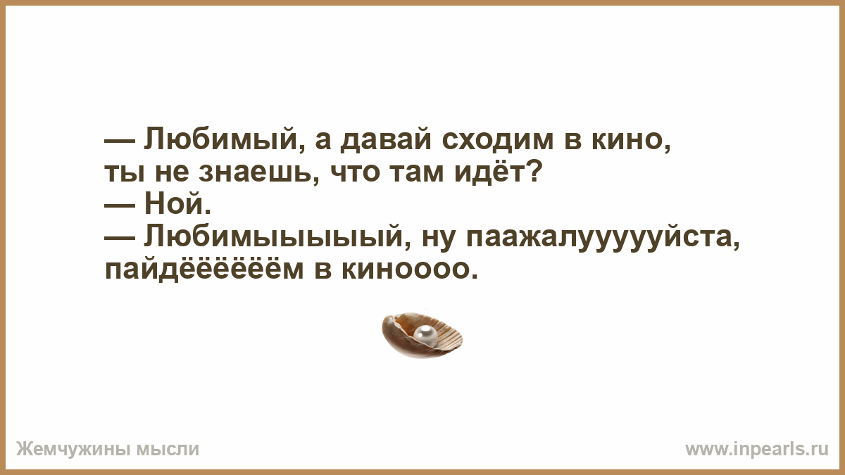 — Любимый, а давай сходим в кино, ты не знаешь, что там идёт?