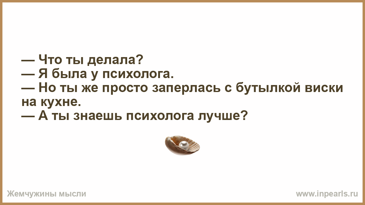 — Но ты же просто заперлась с бутылкой виски на кухне.