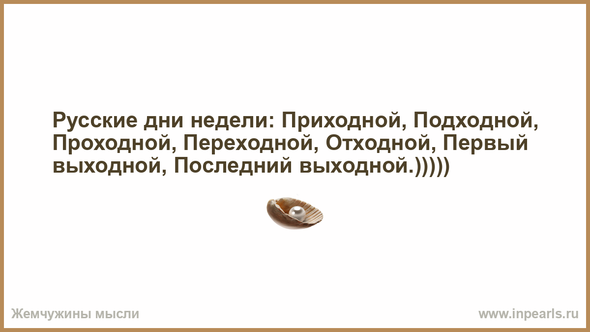 Русские дни недели: Приходной, Подходной, Проходной, Переходной, Отходной, Первый выходной, Последний выходной.)))))