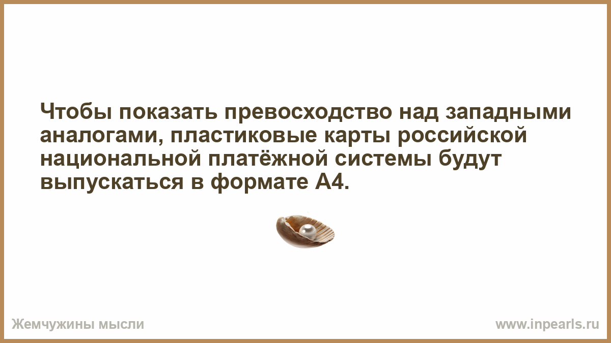Чтобы показать превосходство над западными аналогами, пластиковые карты российской национальной платёжной системы будут выпускаться в формате А4.