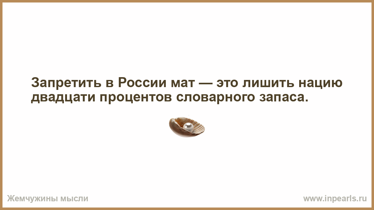 Запретить в России мат — это лишить нацию двадцати процентов словарного запаса.