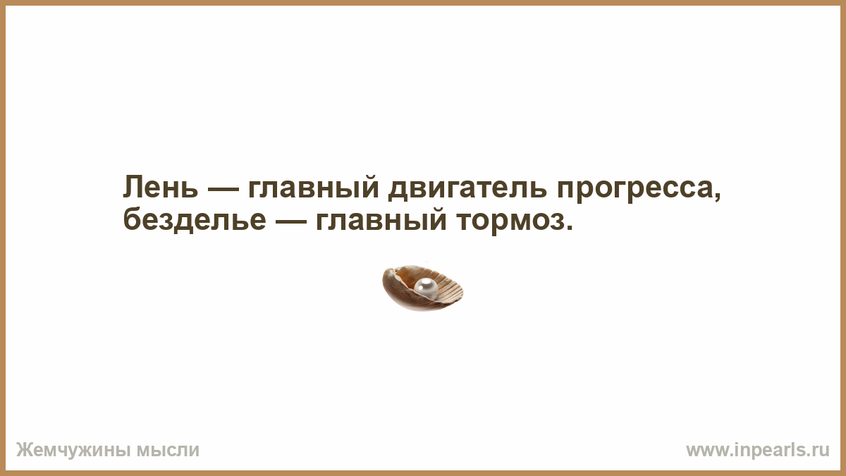 Лень — главный двигатель прогресса, безделье — главный тормоз.