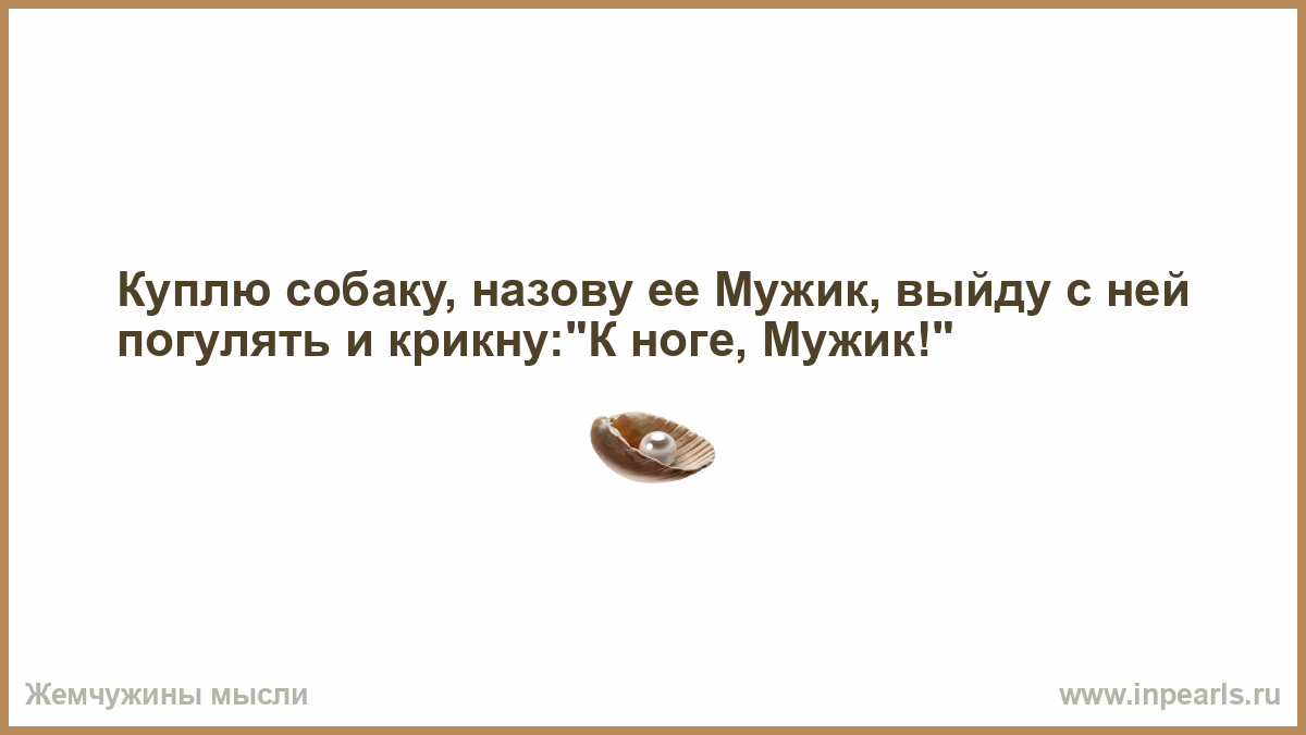 Куплю собаку, назову ее Мужик, выйду с ней погулять и крикну:"К ноге, Мужик!"