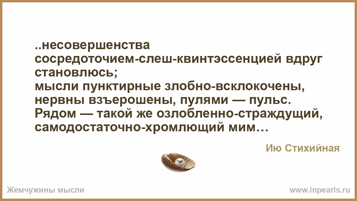 ..несовершенства сосредоточием-слеш-квинтэссенцией вдруг становлюсь;