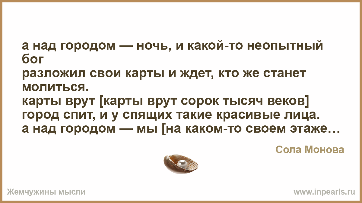 а над городом — бог, он не верит в каноны наук,