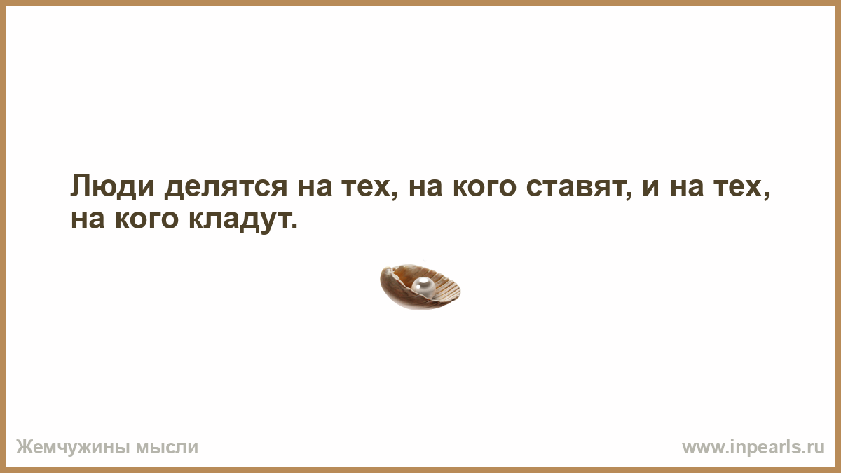 Люди делятся на тех, на кого ставят, и на тех, на кого кладут.