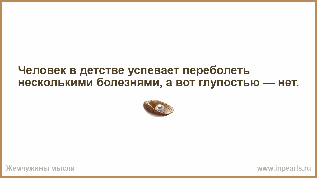 Человек в детстве успевает переболеть несколькими болезнями, а вот глупостью — нет.