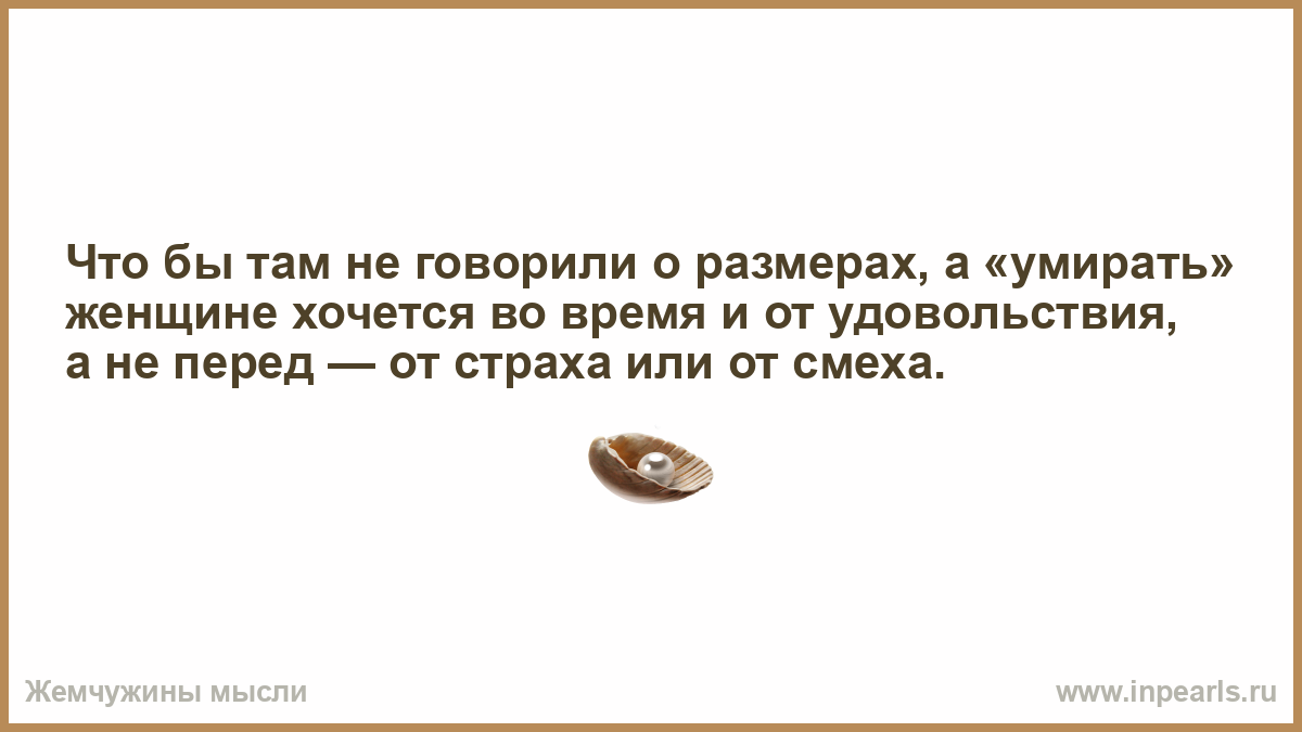 Что бы там не говорили о размерах, а «умирать» женщине хочется во время и от удовольствия, а не перед — от страха или от смеха.