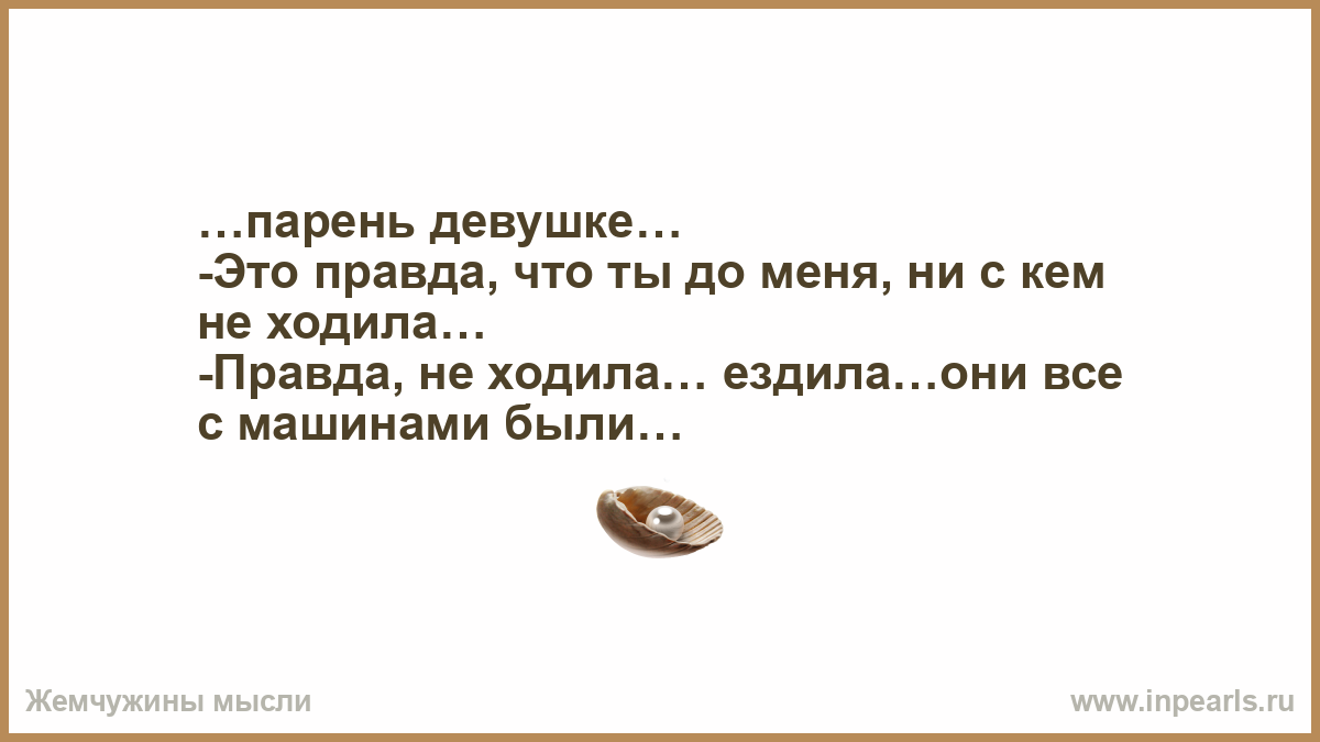 …парень девушке… -Это правда, что ты до меня, ни с кем не ходила… -Правда, не ходила… ездила…они все с машинами были…