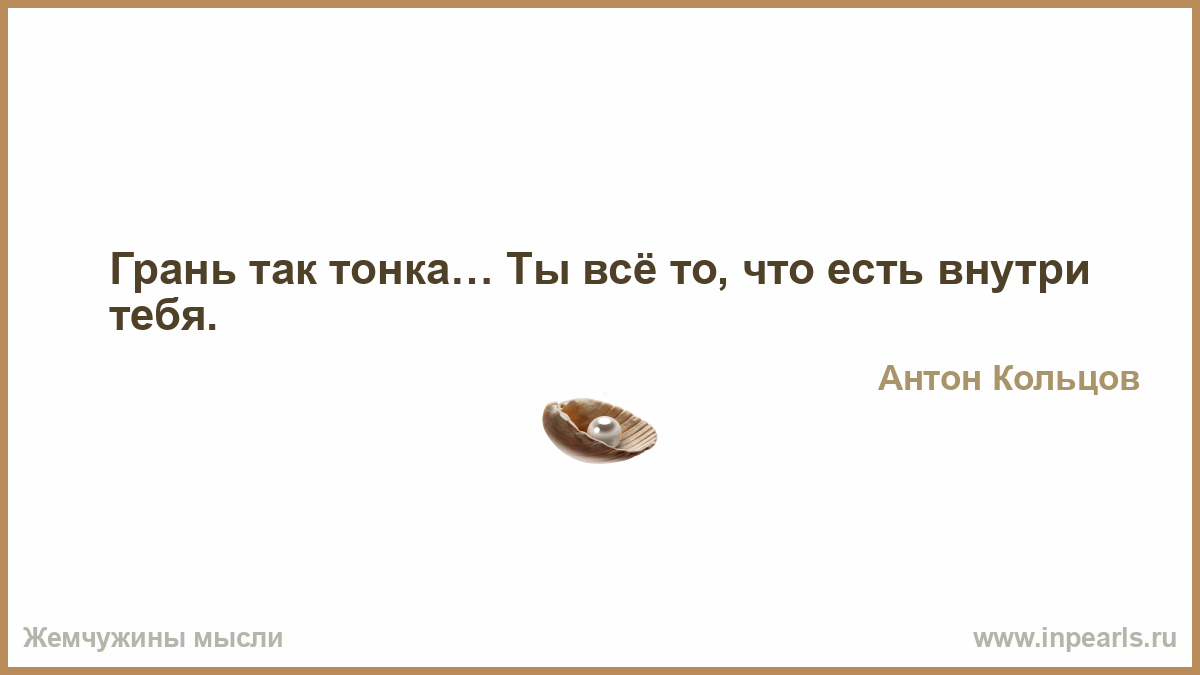 Грань так тонка… Ты всё то, что есть внутри тебя.