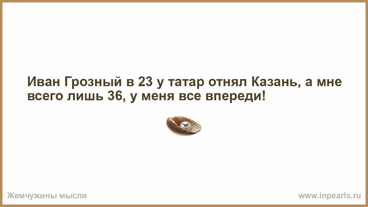 Иван Грозный в 23 у татар отнял Казань, а мне всего лишь 36, у меня все впереди!