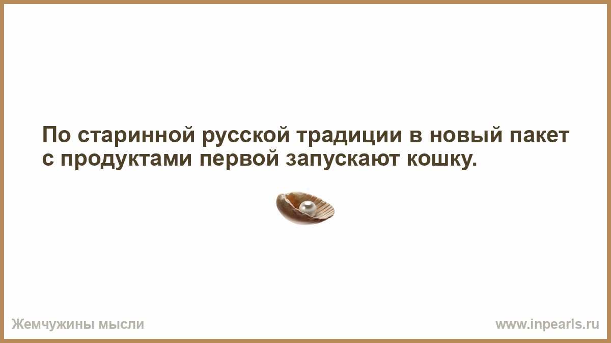 По старинной русской традиции в новый пакет с продуктами первой запускают кошку.
