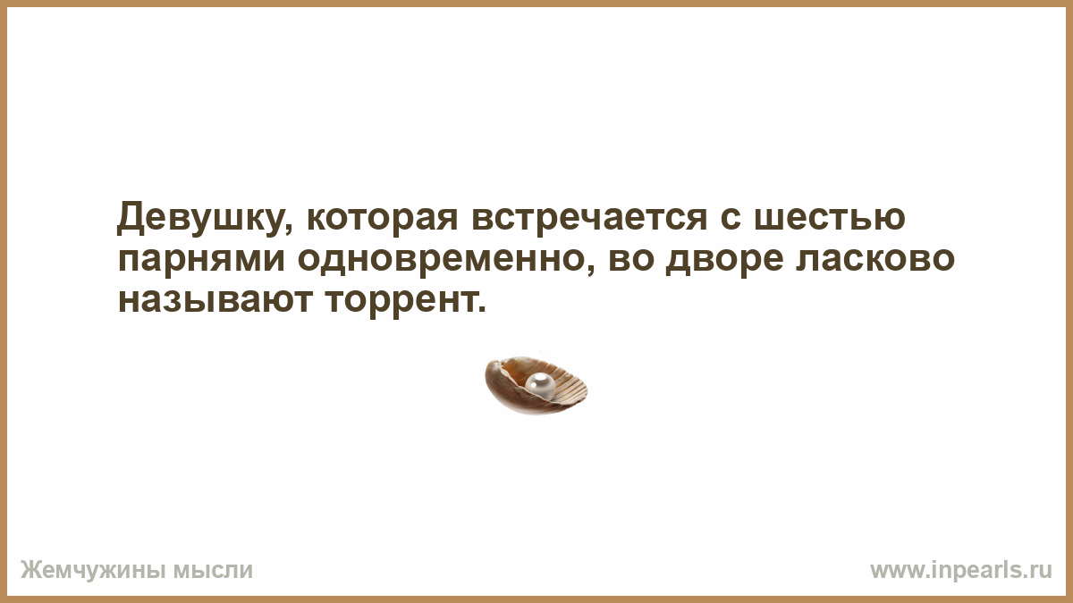 Девушку, которая встречается с шестью парнями одновременно, во дворе ласково называют торрент.
