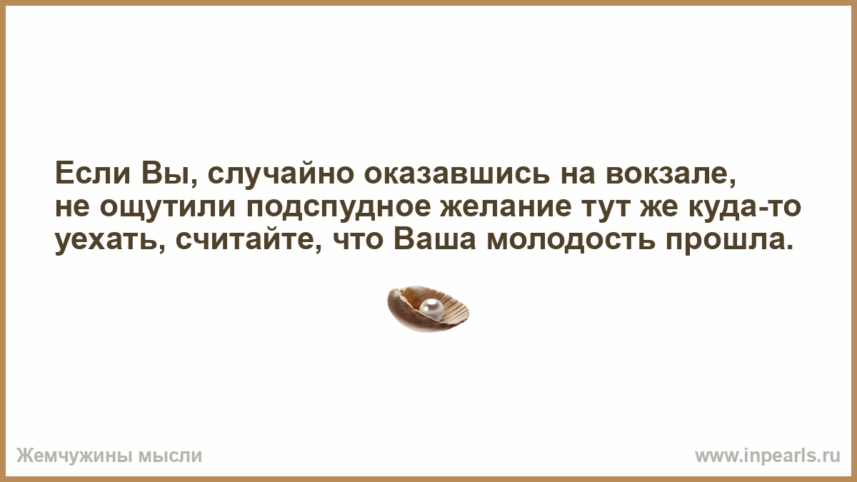 Если Вы, случайно оказавшись на вокзале, не ощутили подспудное желание тут же куда-то уехать, считайте, что Ваша молодость прошла.