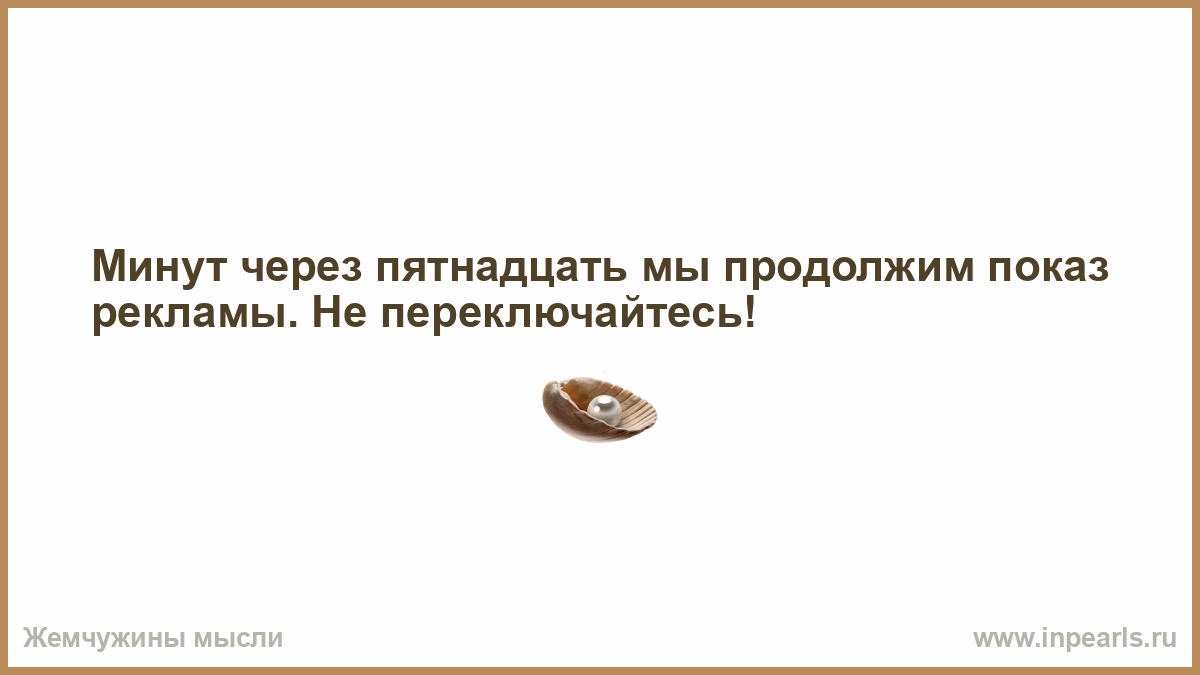 Минут через пятнадцать мы продолжим показ рекламы. Не переключайтесь!