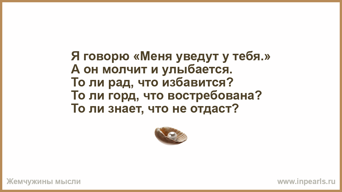Я говорю «Меня уведут у тебя.» А он молчит и улыбается. То ли рад, что избавится? То ли горд, что востребована? То ли знает, что не отдаст?