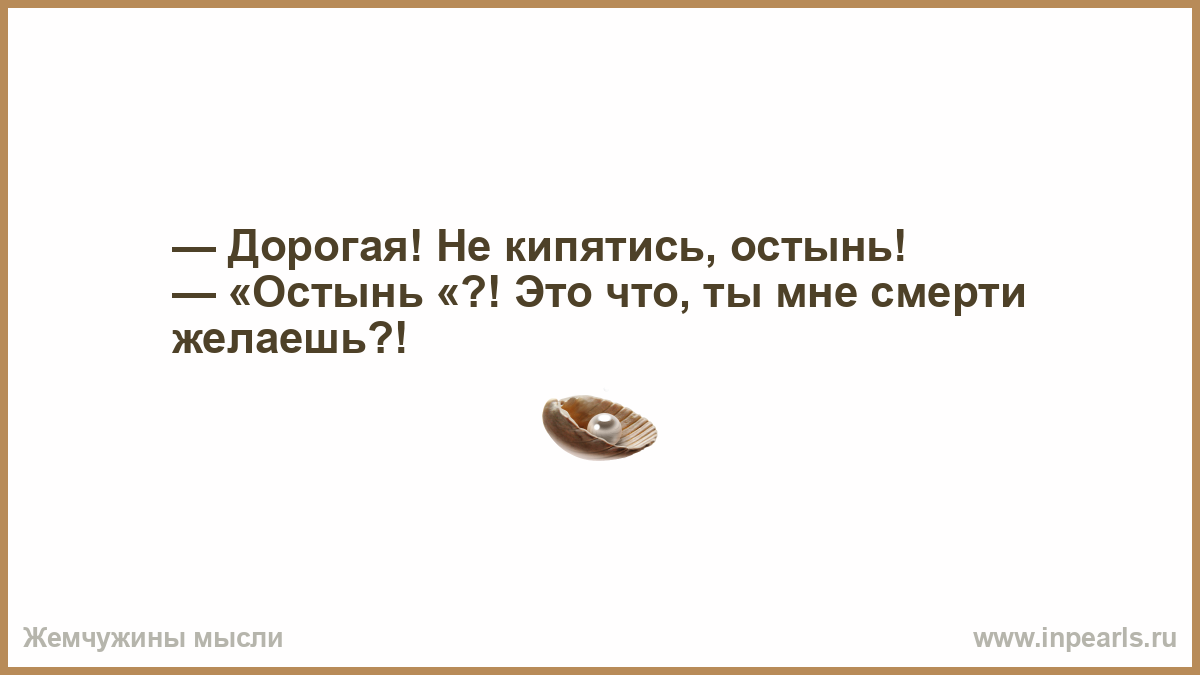 — Дорогая! Не кипятись, остынь! — «Остынь «?! Это что, ты мне смерти желаешь?!