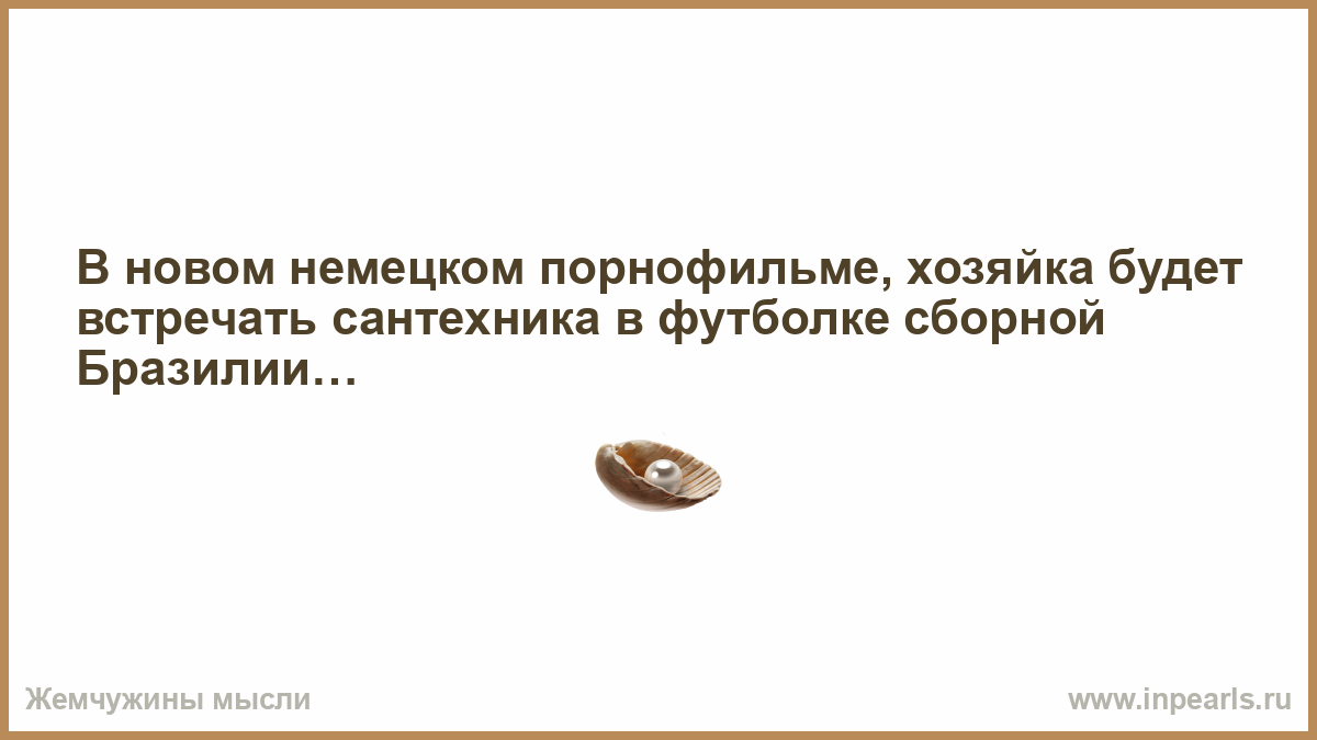 В новом немецком порнофильме, хозяйка будет встречать сантехника в футболке сборной Бразилии…