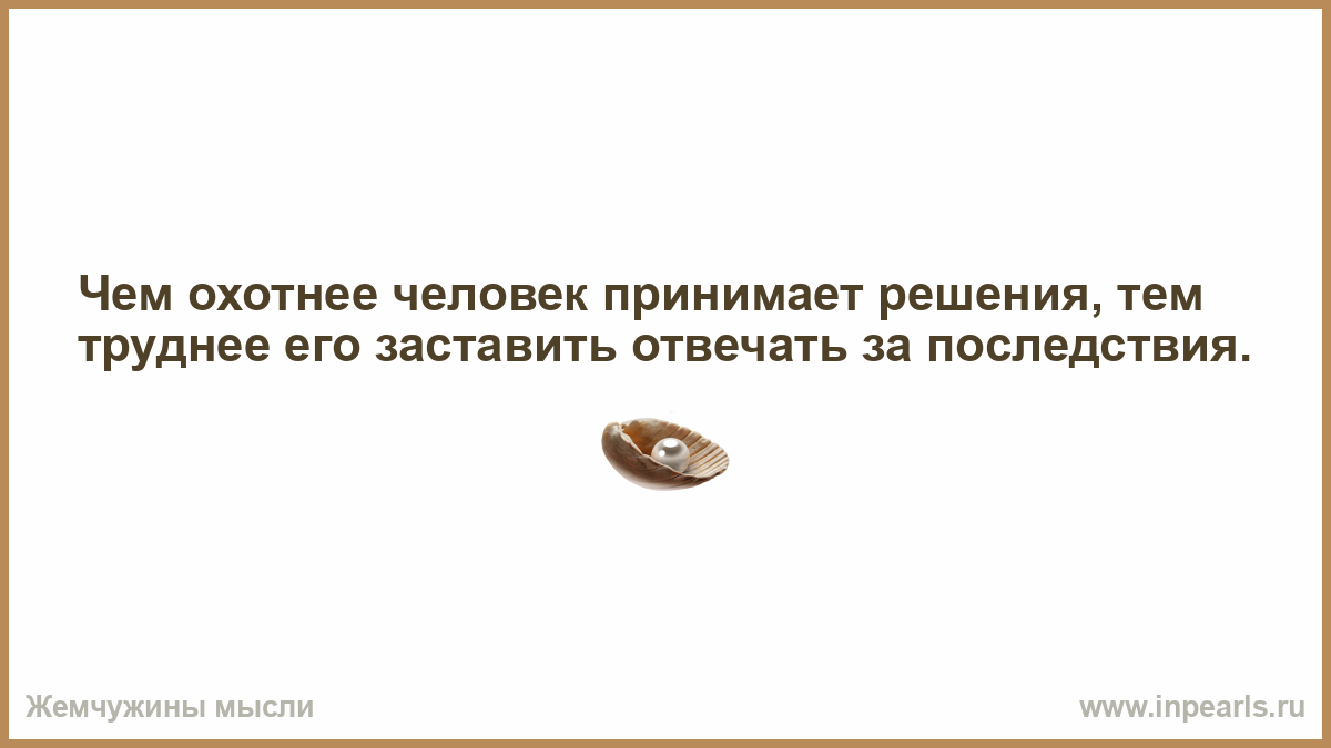Чем охотнее человек принимает решения, тем труднее его заставить отвечать за последствия.