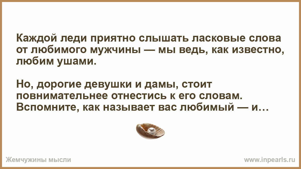 Каждой леди приятно слышать ласковые слова от любимого мужчины — мы ведь, как известно, любим ушами.