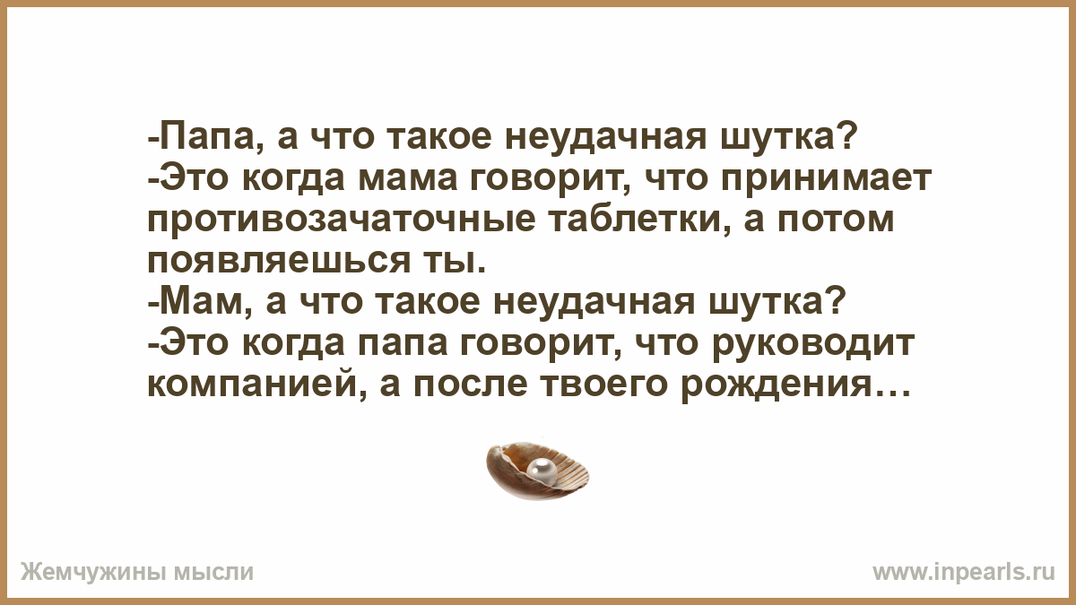 -Это когда мама говорит, что принимает противозачаточные таблетки, а потом появляешься ты.