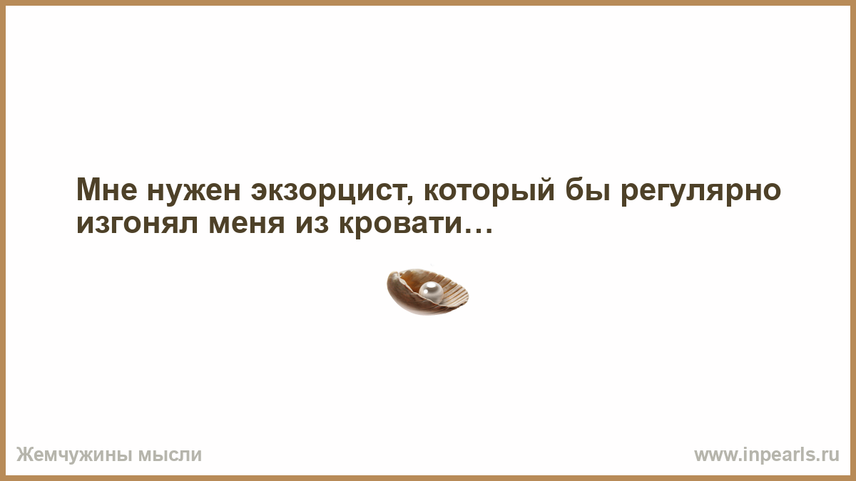 Мне нужен экзорцист, который бы регулярно изгонял меня из кровати…