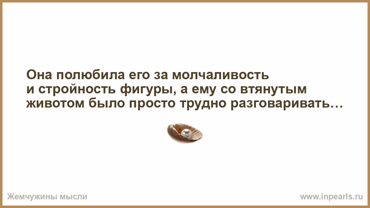 Она полюбила его за молчаливость и стройность фигуры, а ему со втянутым животом было просто трудно разговаривать…