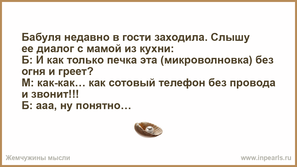 Б: И как только печка эта (микроволновка) без огня и греет?