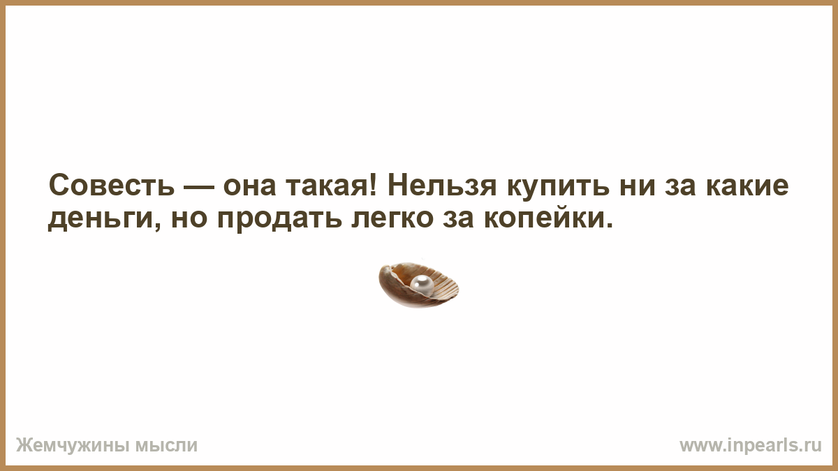 Совесть — она такая! Нельзя купить ни за какие деньги, но продать легко за копейки.