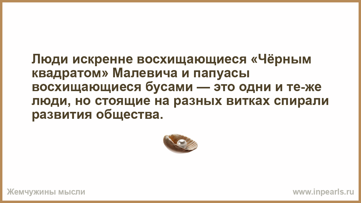 Люди искренне восхищающиеся «Чёрным квадратом» Малевича и папуасы восхищающиеся бусами — это одни и те-же люди, но стоящие на разных витках спирали развития общества.