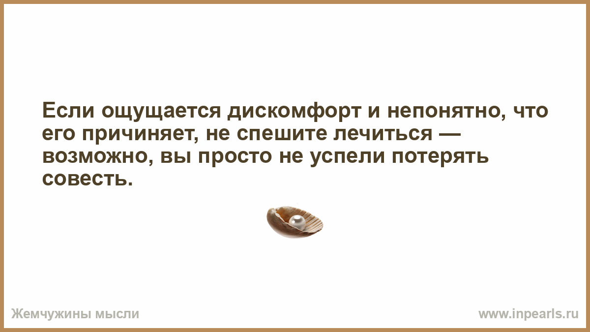 Если ощущается дискомфорт и непонятно, что его причиняет, не спешите лечиться — возможно, вы просто не успели потерять совесть.