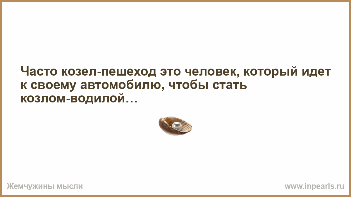 Часто козел-пешеход это человек, который идет к своему автомобилю, чтобы стать козлом-водилой…