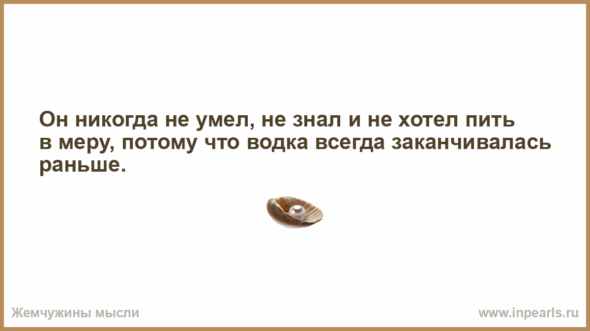 Он никогда не умел, не знал и не хотел пить в меру, потому что водка всегда заканчивалась раньше.