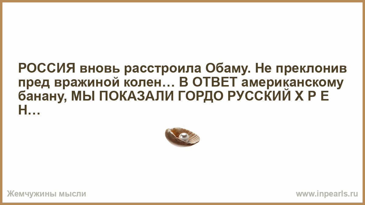 РОССИЯ вновь расстроила Обаму. Не преклонив пред вражиной колен… В ОТВЕТ американскому банану, МЫ ПОКАЗАЛИ ГОРДО РУССКИЙ Х Р Е Н…